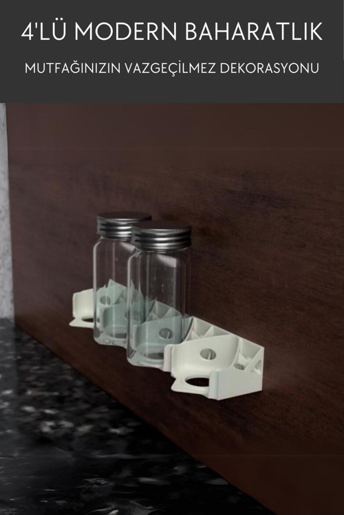 Dolap içine veya duvara monte edilebilen bu 4'lü baharatlık seti, hem yer tasarrufu sağlar hem de baharatlarınızı şık bir şekilde sergilemenize olanak tanır.