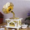 Gramofon Müzik Kutusu üzerinde iğnesinin iğnesi, sesi ileten borusu, kurma kolu ve plağı bulunmaktadır.