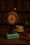 Nostaljik Klasik Prestijli Çalışma Masanıza Masa Saati Biblosu Dünya Küresi Antika Saat 19 Cm-Y