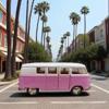 Nostaljik Metal Çek Bırak Pembe Wv Minibüs Araba Kapılar Açılır