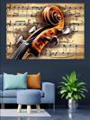 Karizmart Notalar Üzerinde Keman İllüstrasyonu Dekoratif Kanvas - Mdf Ahşap Tablo