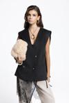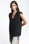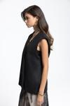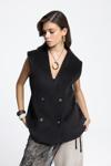 Rahat formda, hafif düşük kol, kruvaze kapamalı, düğmeli, orta boy astarlı yelek.