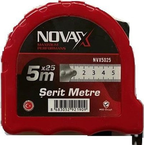 Novax Şerit Metre Kırmızı 5X25 Mm