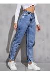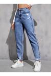 - Yıpratılmış denim pantolon, günlük kullanıma uygun rahatlık ve şıklığı bir arada sunar.
