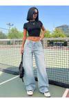 Its Basic Kadın Ice Kot Rengi 4s5-3 Straight Fit Çiçek Nakışlı %100 Koton İç Boy 80 Cm Tasarım Denim Jean