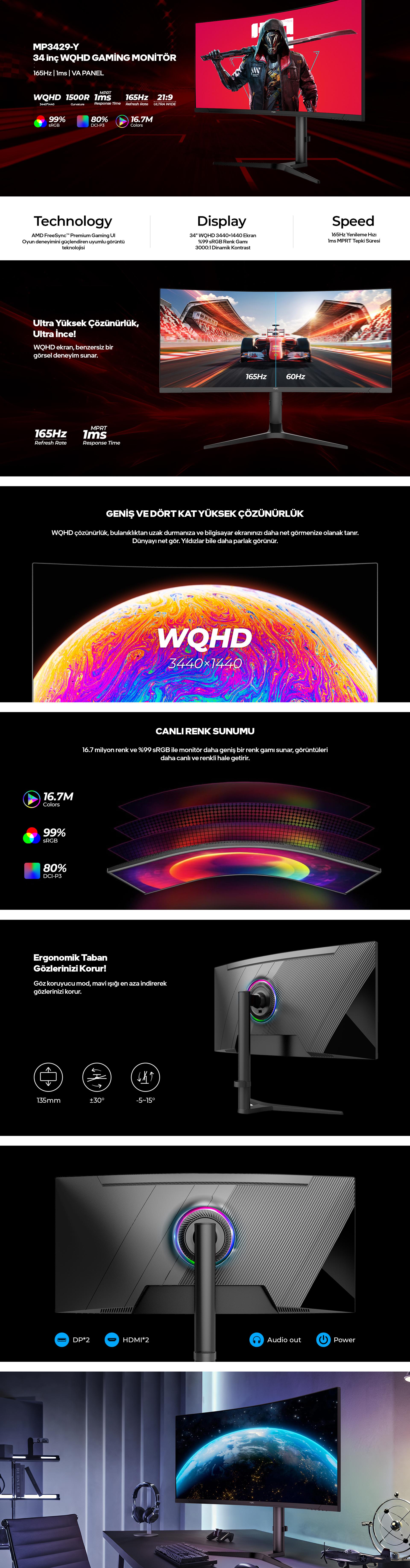 Npc 34" MP3429-Y 165Hz 1ms Va WQHD Curved Gaming LCD Monitör