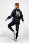 Nakış tekniğiyle işlenmiş yazı karakterli deseniyle dikkat çekici bir stil oluşturur.