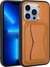 Nüanstek İphone 13 Pro Uyumlu Kartlıklı Standlı Pu Deri Zore Memo Kılıf-Kahve Açık