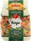 Sebzeli Makarna, durum buğday irmiğine su, ıspanak tozu ve domates salçası ilave edilerek karıştırılması, şekil verilmesi ve kurutulması sonucunda elde edilen yarı hazır gıda maddesidir.