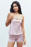 Feu De Elu Nuit Tül Detaylı Gül Kurusu Askılı Saten Pijama Takımı