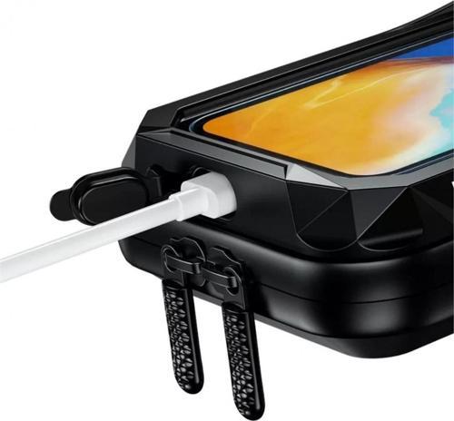 Ayrıca 4,7 - 7,2 İnçe kadar olan cep telefonları içindeki cırtlı bölmeye yerleştirebilirsiniz. Alt kısımda sürüş esnasında kulaklık kullanımı veya sarj için tıpa mevcuttur.