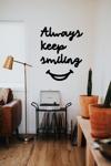 - Montaj Tipi: Çift taraflı bant Evinizin dekorasyonuna modern ve şık bir dokunuş eklemek için "Always Keep Smiling" dekoratif duvar yazısını hemen sepetinize ekleyin!