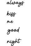 Evinize aşk ve sevgi dolu bir dokunuş katmak ister misiniz? O halde bu duvar yazısı tam size göre! "Always Kiss Me Goodnight" yazılı duvar dekorasyonu, romantik ve şık tasarımıyla yaşam alanlarınıza estetik bir görünüm kazandırır.