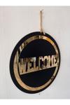 Numa Concept Welcome (Hoşgeldiniz) Kapı Süsü Siyah Mdf Üzeri Aynalı Gold Pleksi Dekorasyon Ürünü 30X30 Cm