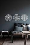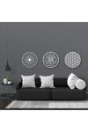 Yaşam Çiçeği, Sri Yantra ve Torus Nefesi sembollerini içeren bu üçlü set, MDF üzeri beyaz ahşap malzeme kullanılarak üretilmiştir.