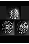 Yaşam Çiçeği, Sri Yantra ve Torus Nefesi sembollerini içeren bu üçlü set, MDF üzeri gümüş renginde aynalı pleksi malzemesi kullanılarak üretilmiştir.