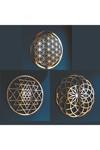 Aynalı gold pleksi malzemeden üretilmiştir ve yaşam çiçeği ile Sri Yantra motifleriyle süslenmiştir.