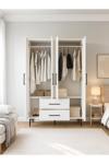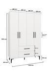 - 4 kapaklı tasarımı ile geniş depolama alanı sunar ve düzenli bir görünüm sağlar.; - 120 cm genişlikteki bu gardırop, geniş iç hacmiyle kıyafetlerinizi rahatça saklamanız için idealdir.; - Aynasız yapısı sayesinde, minimalist ve modern dekorasyon tarzına uyum sağlar.; - 45 cm derinliği ile dar alanlarda bile etkili bir şekilde kullanılabilir; yerden tasarruf sağlar.; - Suntalam gövde materyali, dayanıklılığı ve uzun ömürlü kullanımı garanti eder.; - Modern stil anlayışını yansıtan beyaz renk seçeneği, her türlü oda dekorasyonuyla kolayca uyum sağlar.; - 180 cm yüksekliğiyle hem görsel bir bütünlük sunar hem de geniş saklama kapasitesi sağlar.; - Nemli bezle silinebilir yüzeyi sayesinde temizliği kolaydır; pratik kullanım imkanı tanır.; - 5 yıl garanti süresiyle satın alma sonrasında da güven verir ve müşteri memnuniyetini ön planda tutar.