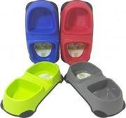 Evcil hayvanlar için özel olarak üretilmiş kaydırmaz tabanlı, köşe kısımlarında pati desenli kabartmaları bulunan Nunbell İkili Mama Kabı L boy.