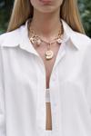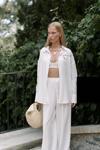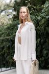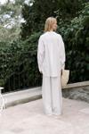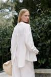 Uzun kollu, sırt işlevli pat detaylı oversize gömlek.