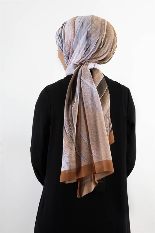 KREP ŞAL EFEKTLİ VE SOYUT DESENLİ TABA RENKLİ 70X190 KIRIŞMAZ ŞAL İTAYLYAN DİKİŞLİ