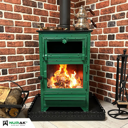 Doğallığın ve Dayanıklılığın Buluşması: Yeşil renkli şöminemiz, kalın demir çelik malzeme ve döküm iç ateşlik ızgarasıyla üretilmiştir.