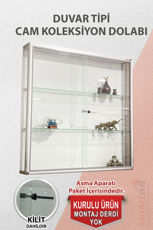 Cam vitrin - Cam dolap - Camlı vitrin Standart özellikler: Yükseklik:100; genişlik:100; derinlik:20 • alüminyum eloksal çerçeve • ayarlanabilir raf yüksekliği • raf ve kapak cam kalinligi 4mm • yan ve arka cam kalınlığı 4mm • kullanıma hazır teslim • sürgülü cam kapak Opsiyon : Spotlu model seçeneğimiz mevcuttur . Özel ölçü imalat yapılmaktadır . kupa dolabı, koleksiyon dolabı, model araba dolabı, teşhir dolabı, müze vitrini olarak kullanabilirsiniz.