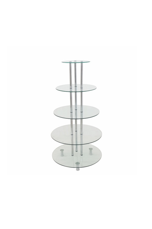 Nurline Krom Ayaklı Yuvarlak Camlı Orta Sehpa - 5 Raflı - Yuvarlak Cam Raflı Eczane Vitrini - Camlı Stand