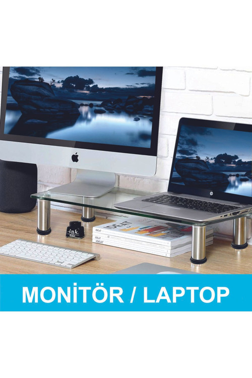 Nurline Monitör Yükseltici, Cam Monitör Standı ,Ekran Yükseltici, Monitör Yükseltme , Cam Monitör Altlığı