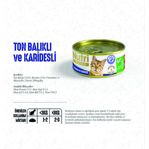 İçerikler: Ton Balığı (%41), Karides (%4), Vitaminler ve Mineraller, Taurin 200mg/Kg.