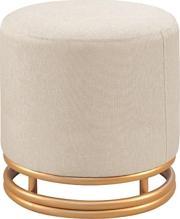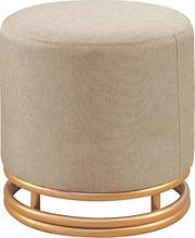 Asaella Mobilya Nuvi Puf Gold Metal Çerçeveli Keten Çok Amaçlı Dekoratif Oturak, Makyaj Oturağı,Montajsız Puf Bench