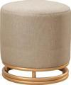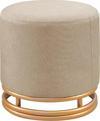 Asaella Mobilya Nuvi Puf Gold Metal Çerçeveli Keten Çok Amaçlı Dekoratif Oturak, Makyaj Oturağı,Montajsız Puf Bench