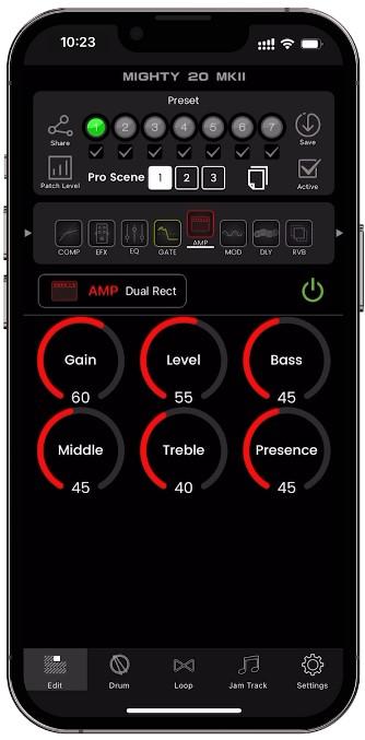 Tam Düzenleme Kontrolü MIGHTY 20 MKII'nin MIGHTY EDITOR™ bilgisayar yazılımı ve hem Android hem de iOS cihazlarla uyumlu MightyAmp™ Uygulaması ile ton ayarlama deneyiminizi yükseltin. |