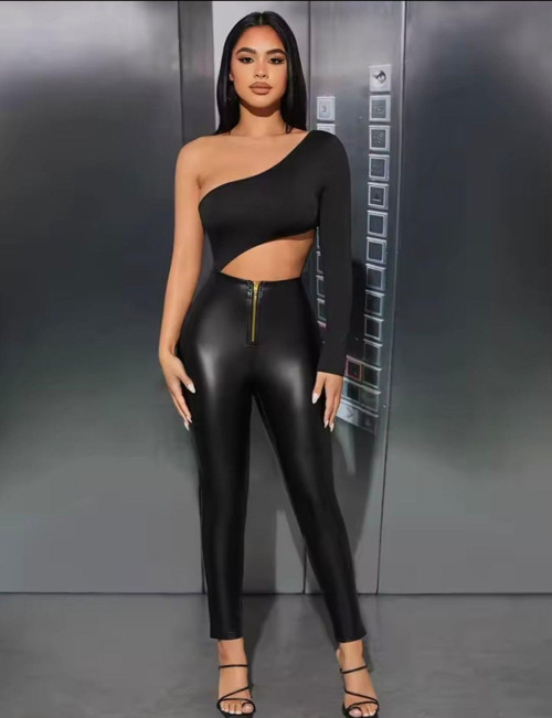 Nyc Giyim Tekstil Golden Fermuarlı Deri Tayt Kadın Dar Paça