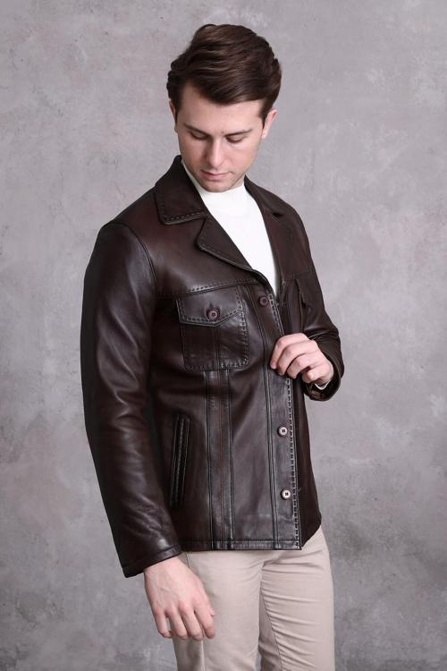 biri fermuarlıdır, -Kapama tipi 4 ilik düğmeli, -Dikiş teknolojisi : Punto çift dikiş dir, -İçerde sağlı sollu biri fermuarlı 2 cep vardır, -İç kısmı ithal astar dır, -Dolgu malzemesi olarak: Deri ile astar arası hafif elyaf dolumdur,