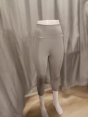 -Dokuma dalgıç kapri tayt tan üretilmiştir, Manken üzerindeki M bedendir, -Likralı ve esnek olması sebebiyle toparlayıcıdır, -Bel olarak yüksel bel dir, -Ürün 4 adet parçadan oluşmaktadır, -Dikiş teknolojisi olarak 4 iplik Overlok ve paça dikimi 3 iplik reçme den dikilmiştir, -Dikiş ip rengi olarak siyah renk kullanılmıştır, -Materyal bileşimi olarak: Dokuma Dalgıç kumatan üretilmiştir