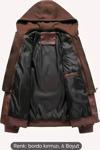 Nyc Giyim Tekstil Kapüşonlu Hakiki Deri Apolet Ve Fermuar Detaylı Mont