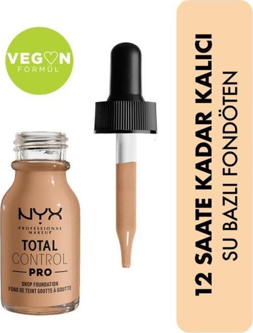 Fondötenden beklentisi yüksek bir makyaj tutkunu musun? Bugüne kadar denediğin tüm fondötenler kalıcılık ve kapatıcılık konusunda seni yarı yolda mı bıraktı? O zaman seni yenilenen formüllü ve kapatıcılığını senin belirleyeceğin Total Control Pro Drop Fondöten ile tanıştıralım! Sunduğu geniş ürün ve renk yelpazesiyle herkes için profesyonelliği öne çıkaran NYX Professional Makeup, hafiften yüksek kapatıcılığa, arzu ettiğin kapatıcılığı cildinde istediğin şekilde ayarlayabileceğin Total Control Pro Drop Fondötenin kullanımı kolay özel damlalığı ile likit fondöten deneyimini bambaşka bir seviyeye taşıyor! Üstelik Total Control Pro Drop Fondöten, 12 saate kadar kalıcı ve bulaşmaya dayanıklı su bazlı yapısı ile cildine sağlıklı ve kadifemsi mat bir görünüm vererek hem günlük makyajının hem de gece makyajının favori parçası olacak! Şimdi sana, cildi ağırlaştırmayan ve ciltte yağlı bir his bırakmayan vegan formüllü Total Control Drop Pro Fondöten’in kapatıcılığını nasıl ayarlayabileceğinden bahsedelim: Total Control Drop Fondöteni yüzüne 1-2 damla uygulayarak hafif kapatıcılık, 3 damla ile orta kapatıcılık ve 4+ damla ile yüksek kapatıcılık görünümüne kavuşabilirsin.