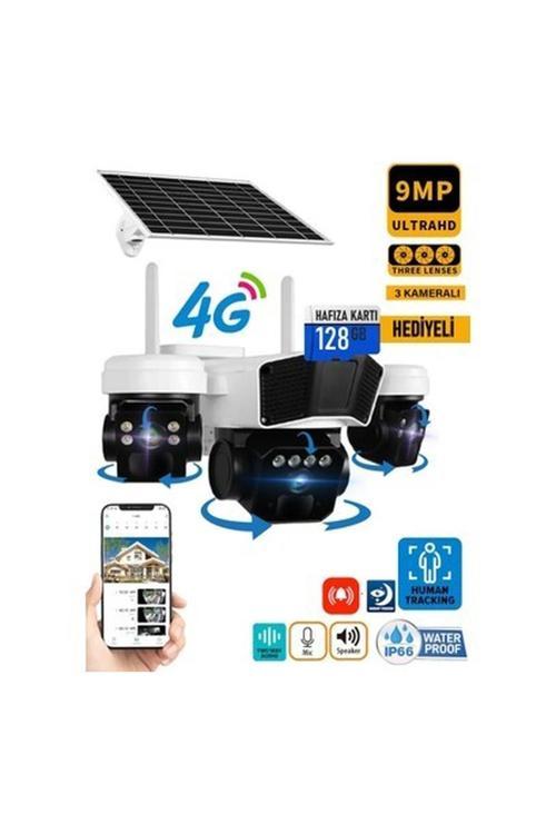 O-Kam 3936 128GB 9MP (3+3+3) Üç Kameralı UltraHD 4G Solar Akıllı Güvenlik Kamerası