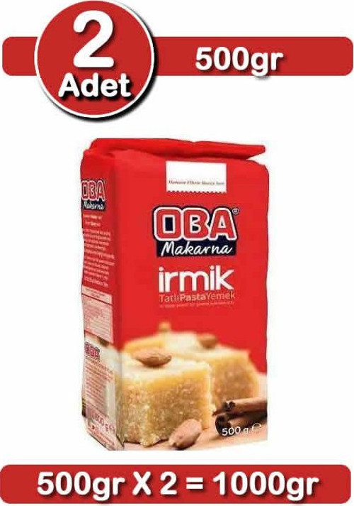 Oba Tatlılık İrmik, 2 adet 500 g’lık paketle toplam 1 kg sunar. Helvalık iri taneli yapısıyla irmik helvası, revani ve şekerpare gibi tatlılarda mükemmel kıvam sağlar.