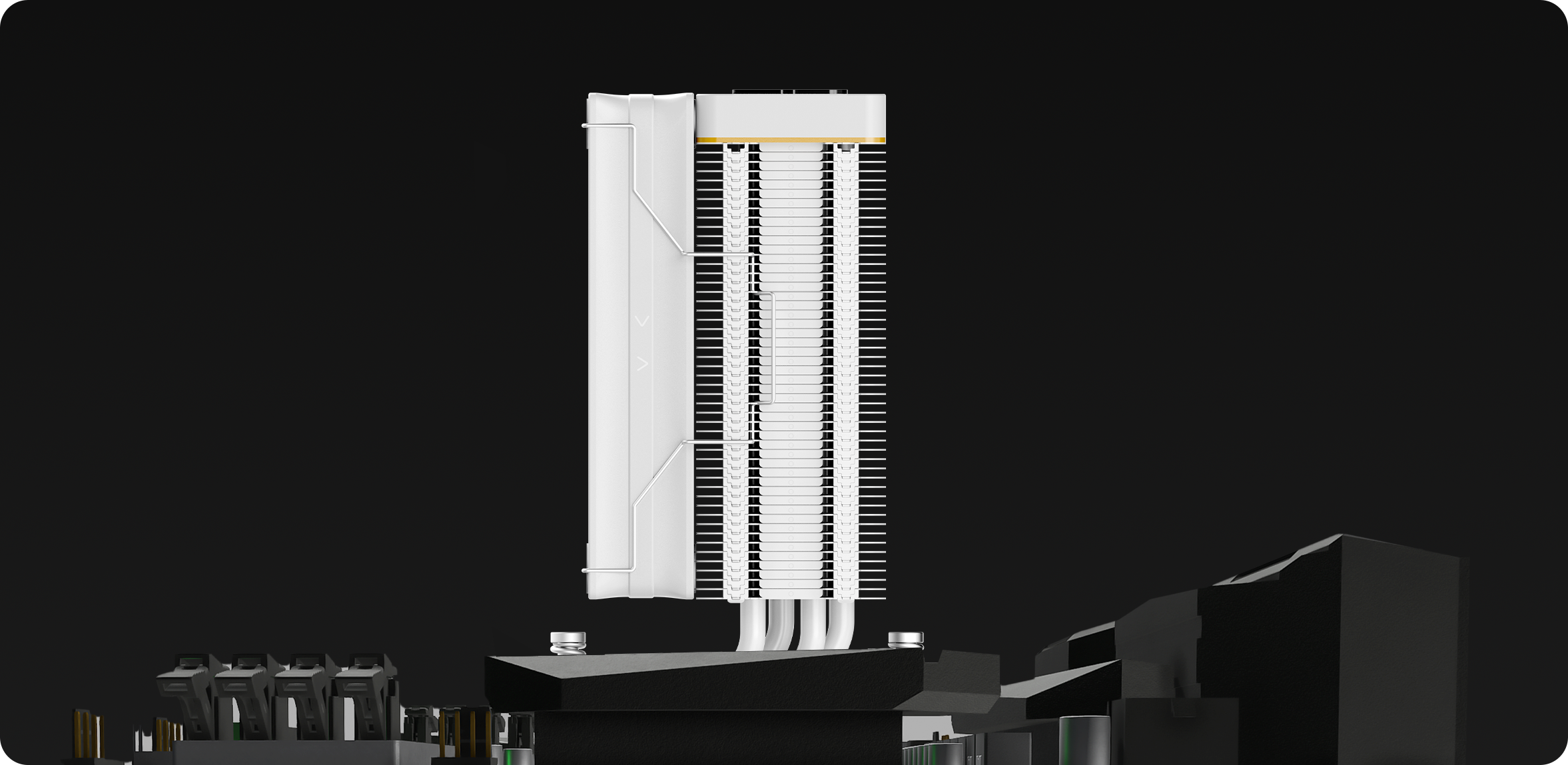 Dairesel eleman vurgularına sahip entegre tasarıma sahip, yüksek performanslı sessiz bir fan ile donatılmıştır. Fan giriş eğrisi, hava akışını etkili bir şekilde artırmak için tekrar tekrar cilalanır. Uzun ömürlü, istikrarlı ve verimli performans için yüksek kaliteli FDB rulmana sahiptir. Tüm köşelere eklenen sönümleme pedleri, rezonanstan kaynaklanan gürültüyü azaltır.