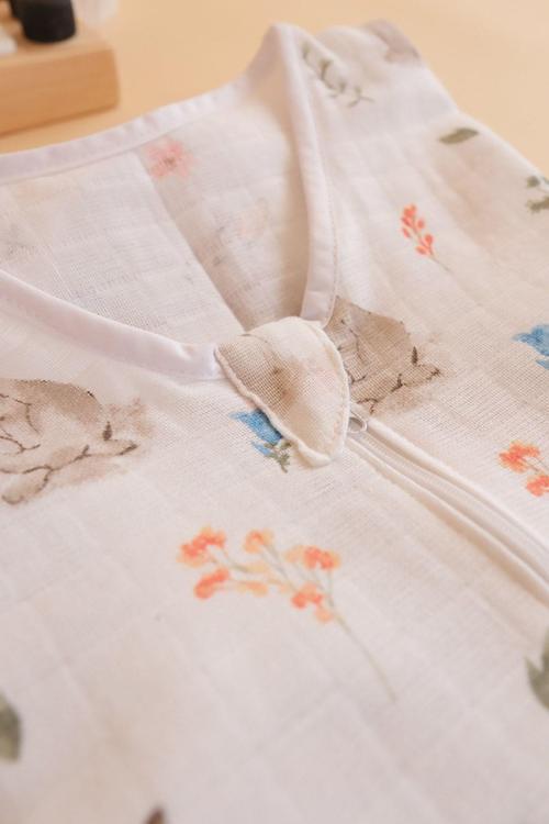 Woman And Kids Oeko-Tex Sertifikalı Yazlık Müslin Kumaş Uyku Tulumu, 0,5 tog Kız Erkek Bebek Uyku Tulumu Tavşan