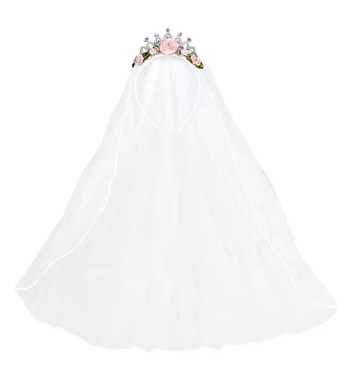 Gelin Duvağı Pembe Güllü ve Pırlanta Taşlı