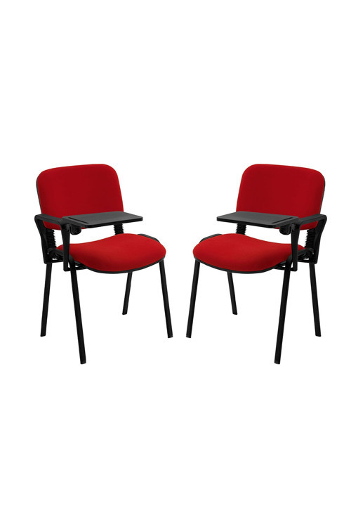 Ofisbazaar Form 2'li Yazı Tablalı Kolçaklı Sandalye – Toplantı, Eğitim ve Seminer Koltuğu (Kırmızı Kumaş) Kırmızı