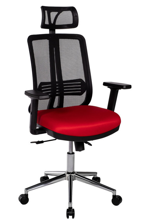 UP Fileli Yönetici Koltuğu | Ayarlanabilir Başlıklı Ofis Koltuğu Siyah Fileli/ Kırmızı
