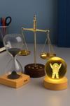 Kesene Ofisinize 3’lü Masaüstü Dekorasyonu Ahşap Standlı Astronot Işıklı Küre Adalet Terazisi ve Kum Saati