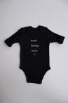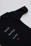 Yazılı Nakışlı Body Set Regular kalıp sayesinde bebeğinizin hareket özgürlüğünü kısıtlamadan rahat bir oturuş sunar