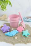 Sete dahil olanlar: Kova, kürek, 4 adet okyanus tema kalıpları Ölçüleri: KOVA: H14/D10 cm, KÜREK: U22/G6,5 cm, KALIPLAR: D8 cm