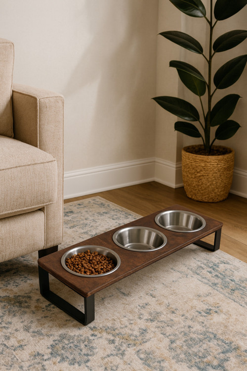 Okay Küçük Kedi Ve Yavru Köpek Mama Kabı – 10° Eğimli Yükseltilmiş 3’Lü Çelik Kase Seti