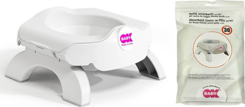 OkBaby Bebek Banyo Seti Roady Eğitici Oturak & Klozet Adaptörü K. Beyaz & Roady Disposable Bez Seti 30'lu